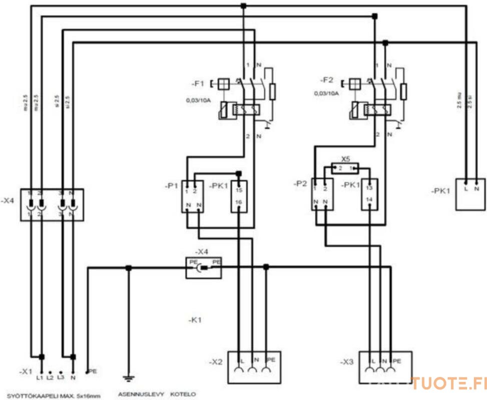 Liitettävien johtimien poikkipinta-ala: 2.5-16 mm²