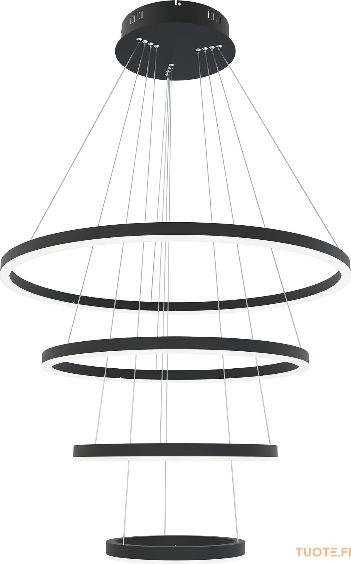 Neljä valorengasta, joista jokaisen renkaan korkeus ja kallistus voidaan säätää erikseen, mikä mahdollistaa yksilöllisen ilmeen ja valon jakautumisen tilassa. Sopii erinomaisesti korkeisiin tiloihin, joissa se voi loistaa täydessä komeudessaan.
