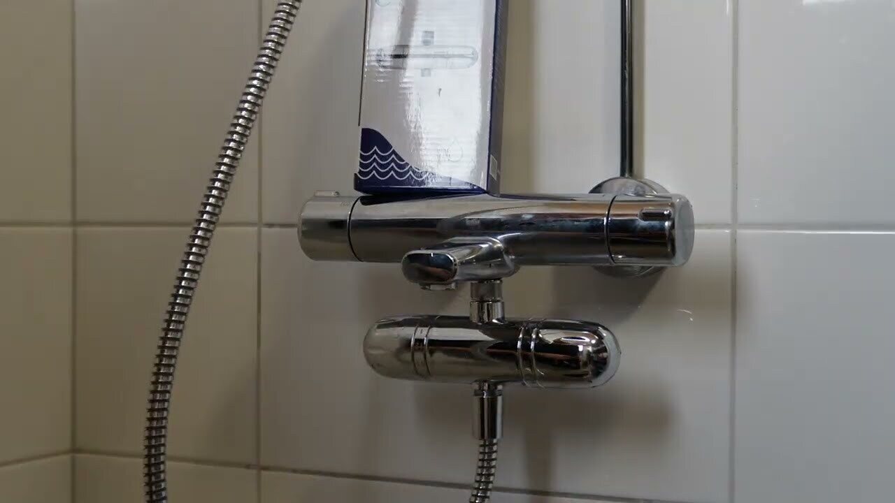 Suodatin kierretään suihkutermostaatin ja suihkuletkun väliin, asennus ei vaadi työkaluja