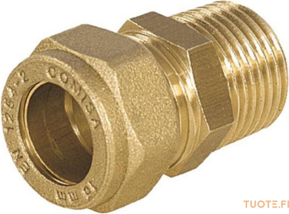 Messinkinen puserruskulmaliitin. käytetään kupariputkien ja pex-putkien liittämiseen.
