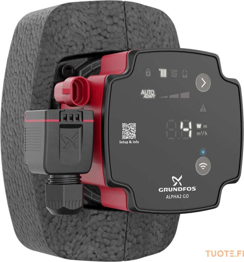ALPHA2 GO on korkean hyötysuhteen kiertovesipumppu lämmitys- ja ilmastointijärjestelmiin. Muodosta yhteys Grundfos GO -sovellukseen sisäänrakennetun Bluetooth-toiminnon kautta ja hyödynnä ohjattua asennusta ja lisätoimintoja.