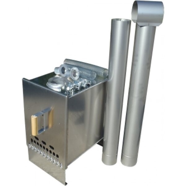 Setti sisältää: kamiina, piippu (2000 mm), läpiviennit (50 mm), letkut, klemmarit