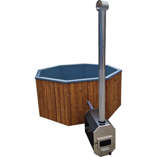 Voit valita viidestä värivaihtoehdoista juuri sinulle sopivan vaihtoehdon: tummansininen (RAL 5010), vaaleansininen (RAL 5024), tummanharmaa (RAL 7015), vaaleanharmaa (RAL 7035), valkoinen (RAL 9003). Kylpytynnyrisettiin sisältyy lasikuituallas, alusta, puuviimeistely, vedenpoisto, 30kW ulkokamiina ja piippu.