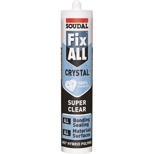 Liimamassa FIX All kristallinkirkas 290 ML, myrkytön, MS-polymeeripohjainen, elastinen, yksikomponenttinen, kristallinkirkas liimaus- ja tiivistysmassa. Sietää liikettä 20% asti, pitää värinsä ja on UV-suojattu.