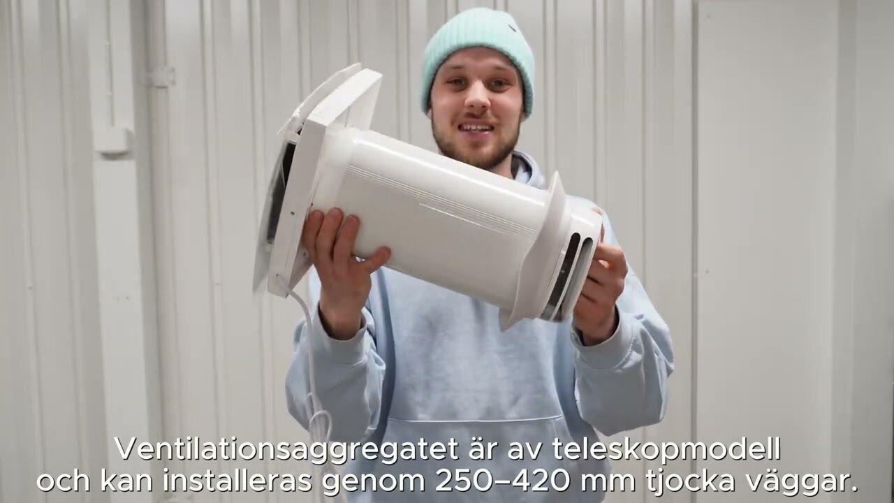 Ilmanvaihtokone on suunniteltu seinän läpi tapahtuvaan asennukseen. Sen teleskooppirakenne mahdollistaa sen kiinnittämisen seinärakenteisiin, jotka ovat 250 mm - 400 mm paksuja. Asennuksen yhteydessä seinään luodaan reikä, jonka halkaisija on 165 mm. Laitteen sähköistäminen on helppoa ja se voidaan liittää suoraan pistorasiaan käyttämällä pistotulppaa.