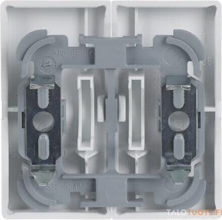 2-osainen vipu 2-vipuisille kytkinrungoille (ei runkoon 10621.xx). Sopii peitelevyjen 1-osaiselle kojeelle tarkoitettuun aukkoon sekä sovittimen 2519-xx avulla 2-osaiselle kojeelle tarkoitettuun aukkoon. Voidaan asentaa kuiviin tiloihin sisälle. Asennettaessa uppoon kosteisiin tiloihin tai ulos on käytettävä tiivistyssarjaa ja ruuvikiinnitteistä vivun runkoa. Valmistettu korkealaatuisesta ja kestävästä muovimateriaalista. Pinta on kiiltävä ja helppo pitää puhtaana. Puhdistus tavanomaisilla miedoilla kotitalouden pesuaineilla. Puhdistamiseen ei saa käyttää tolua ja voimakkaiden liuottimien käyttöä on varottava.