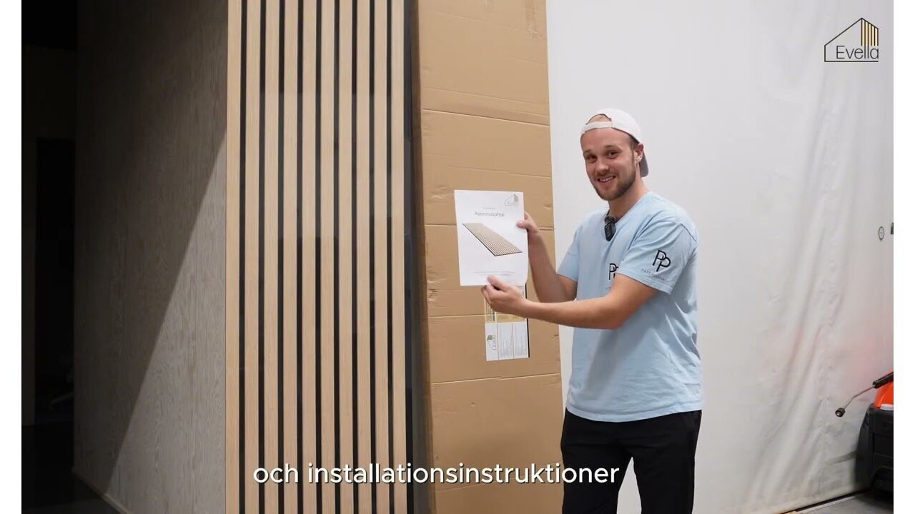 Evella 3D-sarjan akustisisten sisustuslevyjen rimat on päällystetty aidolla puuviiilulla kaikilta kolmelta näkyvältä sivuilta. Akustiikkapaneelit ovat nopea ja vaivaton tapa luoda moderni, arkkitehtoninen vaikutelma tilaan. Moderniin skandinaaviseen tyyliin sopivat paneelit luovat saumattoman rimaseinäpinnan ja tekevät ison parannuksen huoneakustiikkaan.