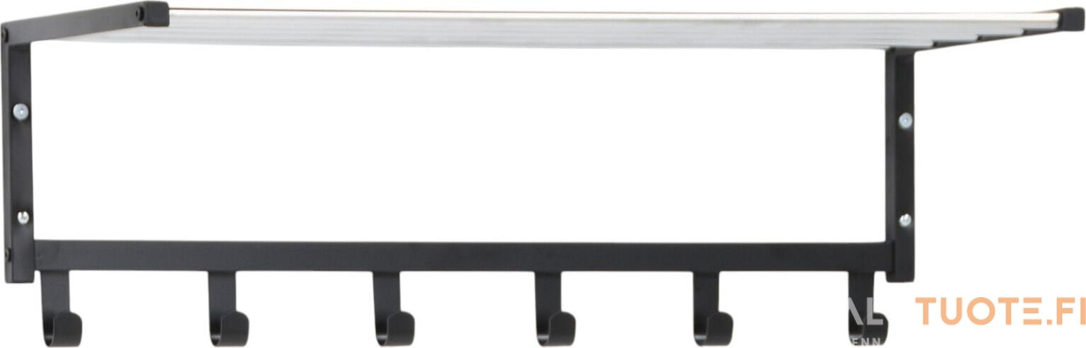Tyylikkään Lidia-hattuhyllyn musta runko sekä koukut ovat metallia ja ritiläputket kromattua metallia. Hattuhyllyn leveys on 80 cm, syvyys 32 cm ja korkeus 26 cm. Seinäkiinnikkeet tulevat mukana. Toimitus osina.