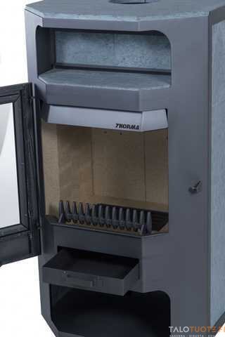Valmistakka Thorma Frankfurt on upeasti muotoiltu pienikokoinen mutta tehokas lisälämmitin kotiin tai mökille. Tulinäkymä aukeaa erkkeriluukun lasista avarasti huonetilaan. Alaosassa tila polttopuille, lämpöhylly pitää kahvin tai teen lämpimänä.
