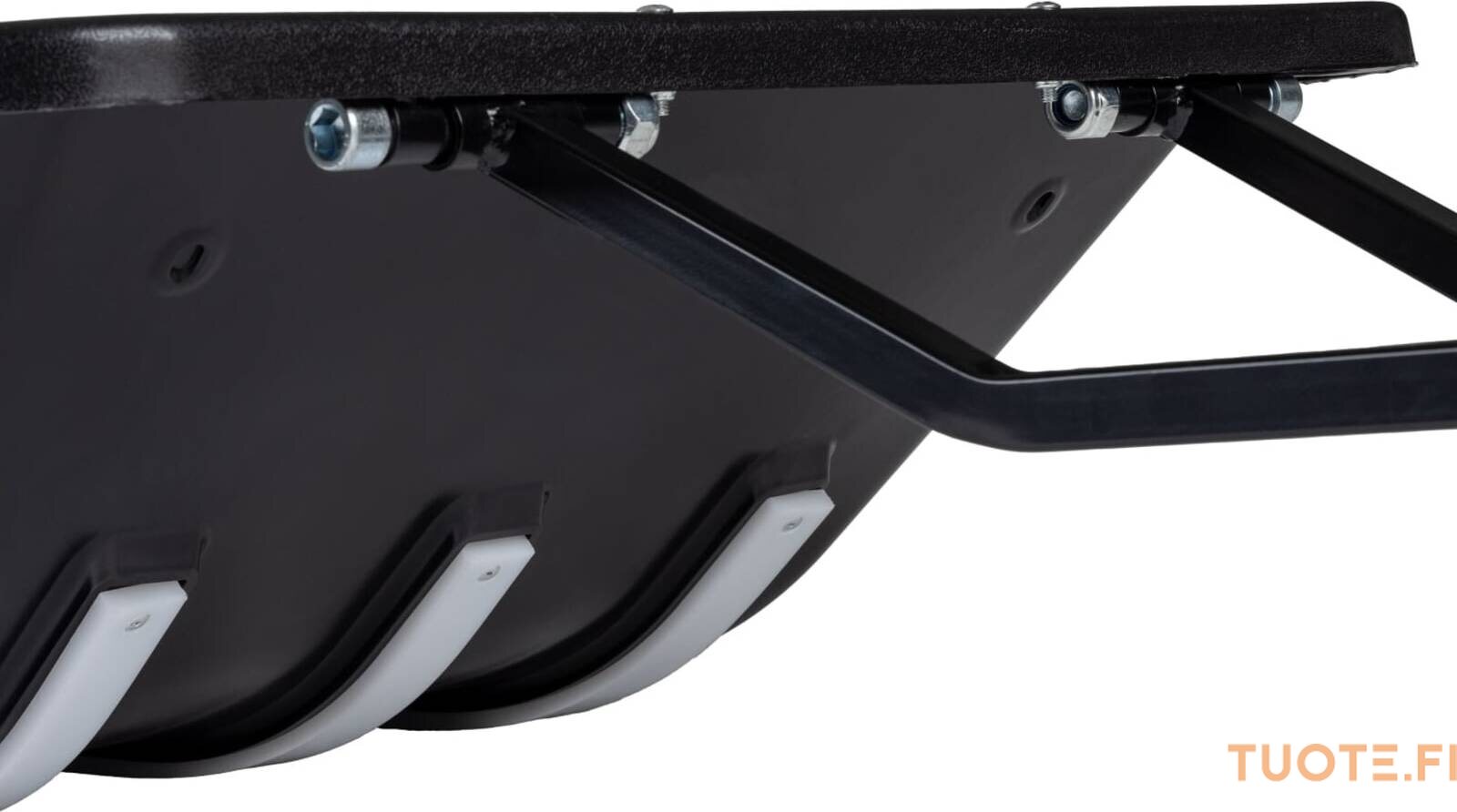 Valmistettu HD-polyeteenimuovista joten luja rakenne kestää iskuja ja sääolosuhtKylläta, kuten kovia pakkasia. Kevyt ja vakaa vetää.