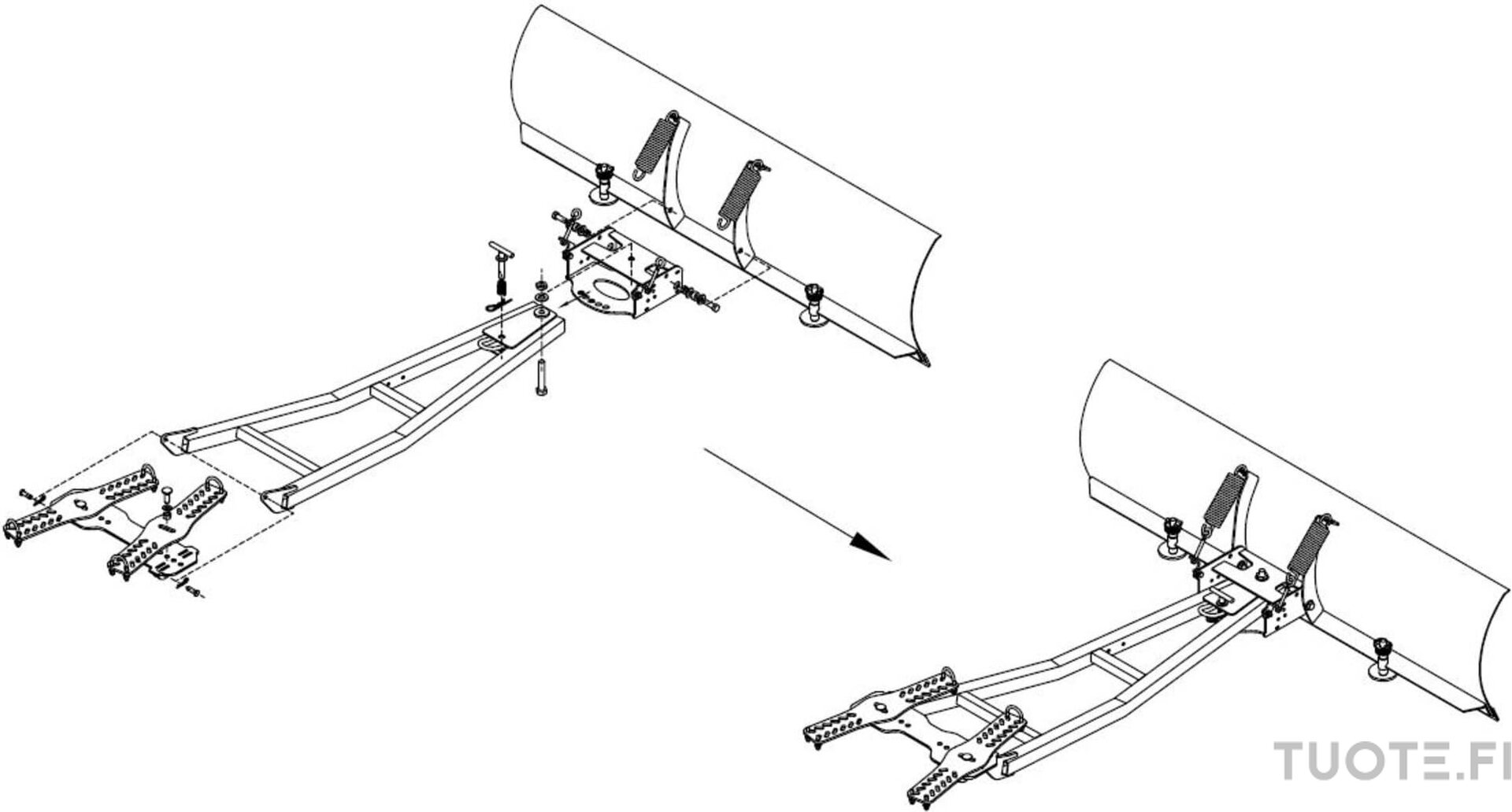 Mönkijän eturunkoon kiinnitettävä 150 cm puskulevy. Sopii erityisen hyvin suurten alueiden auraamiseen, ja silloin kun mönkijä on pääosin vain auraamiskäytössä