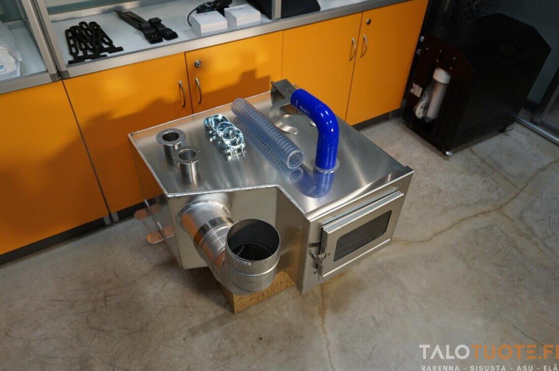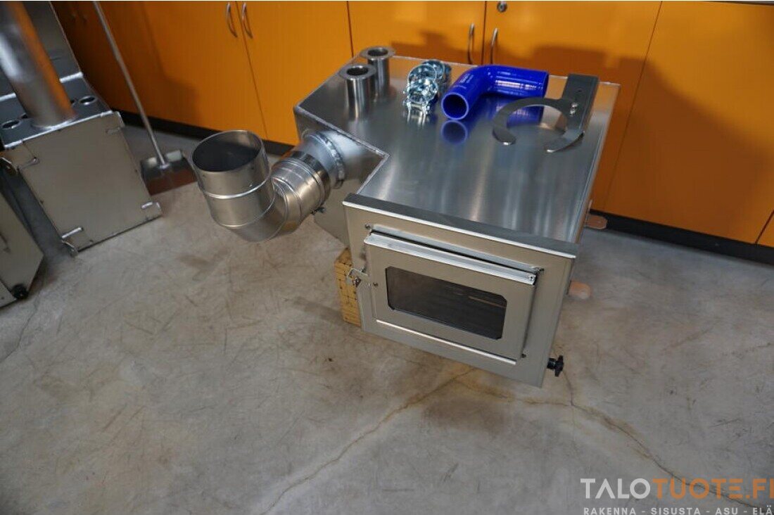 Setti sisältää: kamiina, piippu (2000 mm), lasiluukku, tuhka-arina, läpiviennit 50 mm, letkut, klemmarit, ruostumatonta terästä etulevy