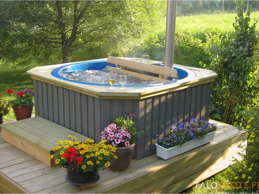 Kylpytynnyriin mahtuu 1100 litraa vettä ja se on tarkoitettu enintään 3-4 henkilölle. Terassipakettiin sisältyy kaikki tarvittava tynnyrin upottamiseen terassiin. Terassipakettiin sisältyy: lasikuituallas, runko (painekyllästettyä puuta), vedenpoisto, 30 kW uppokamiina merialumiinia ja 2 m piippu, suoja-aita. Terassipakettiin voi tilata myös lisävarusteita (ks. alla).