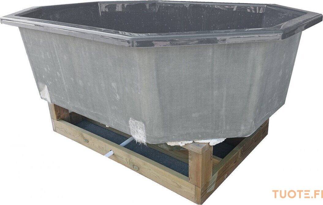Kylpytynnyriin mahtuu 1550 L vettä ja se on tarkoitettu 7-8 henkilölle. Terassipakettiin sisältyy kaikki tarvittava tynnyrin upottamiseen terassiin. Terassipakettiin sisältyy: lasikuituallas, runko (painekyllästettyä puuta), vedenpoisto, ulkokamiina merialumiinia + tarvikkeet (2 m piippu, letkut, klemmarit, läpiviennit). Terassipakettiin voi tilata myös lisävarusteita (ks. alla).