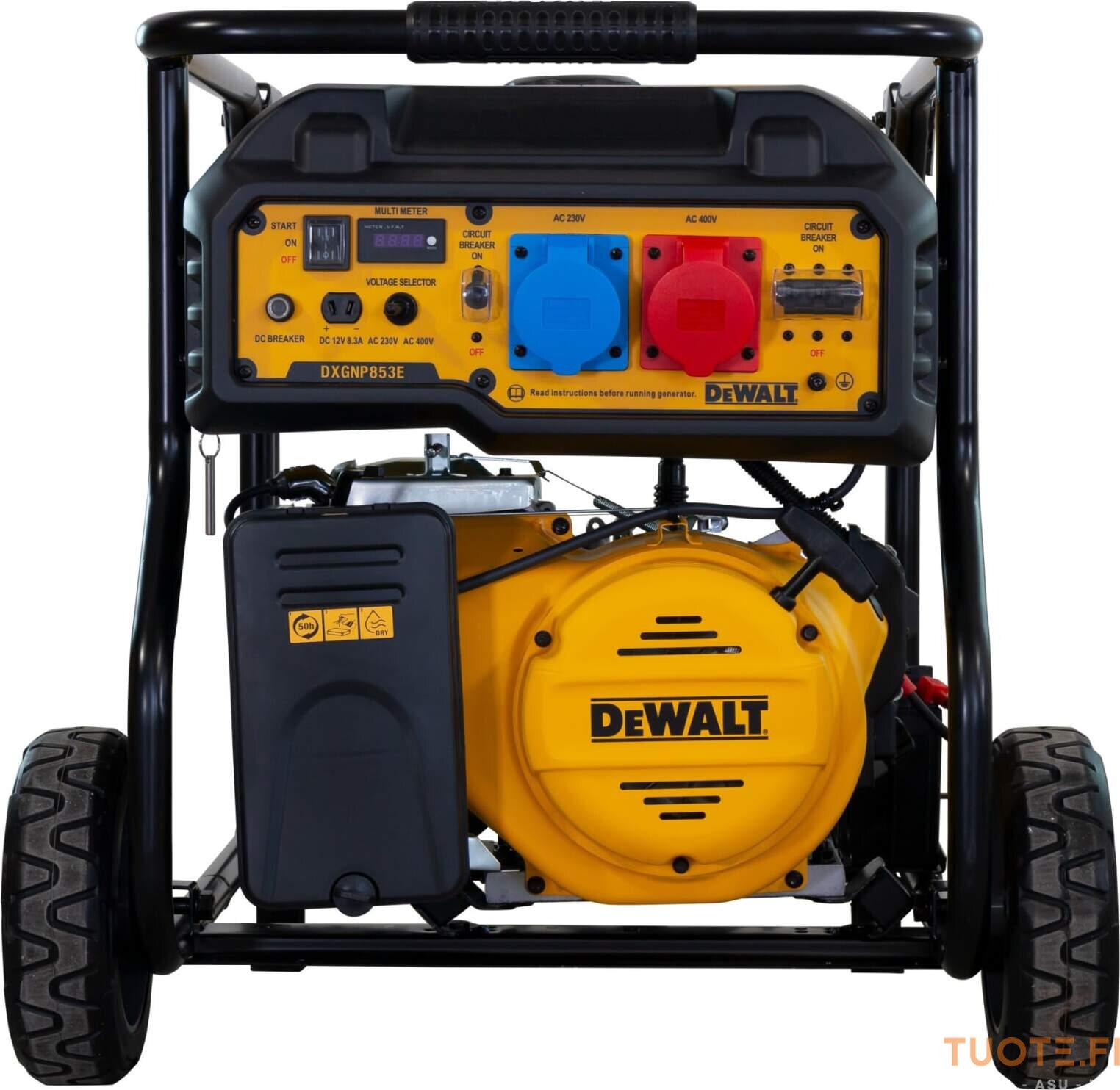 DeWalt DXGNP853E on bensiinitoiminen, sähköstartilla varustettu, voimavirtaa tuottava aggregaatti joka on renkaiden ansiosta parhaimmillaan liikkuvassa työssä. DXGNP853E:n maksimiteho on 7,6kW ja se voi toimia 50% kuormituksen alaisena jopa 9,8 tuntia yhtäjaksoisesti. 28 litran polttoainesäiliö takaa häiriöttömän käytön pitkäksi aikaa.