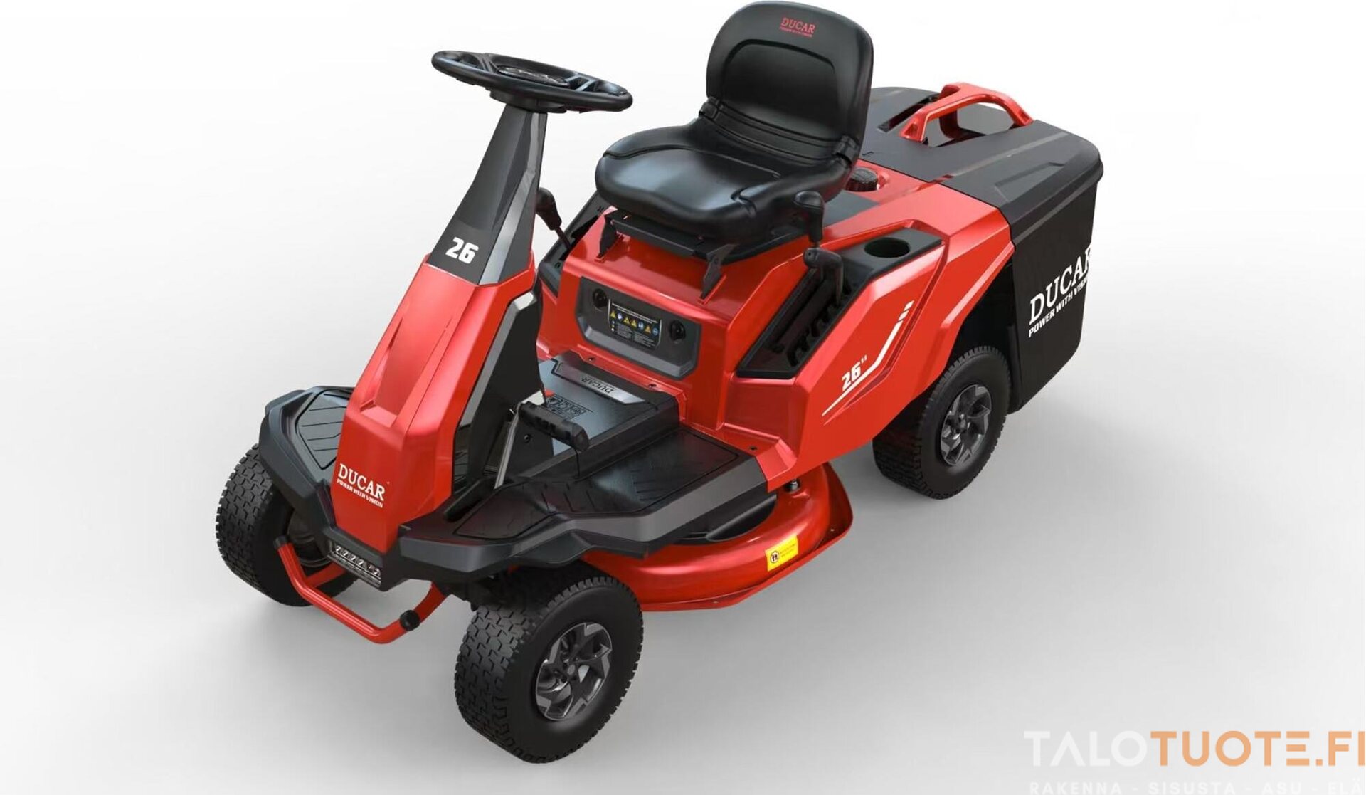 Ducarin DRM26E-D224 on päältä ajettava ruohonleikkuri, joka sopii mainiosti pienten ja hieman suurempienkin pihojen ja puutarhojen siistimiseen. Sillä pääsee sulavasti ahtaisiinkin paikkoihin kuten marjapensaiden ja pihapuiden väleihin. Kääntösäde vain 46 cm. Ajettavassa leikkurissa on helppokäyttöinen CVT vaihteisto kaasu- ja jarrupolkimella. Varustettu Ducarin DV224 taloudellisella ja tehokkaalla polttomoottorilla. Sähköstartilla. Toimitus rautakehikkoon pakattuna.