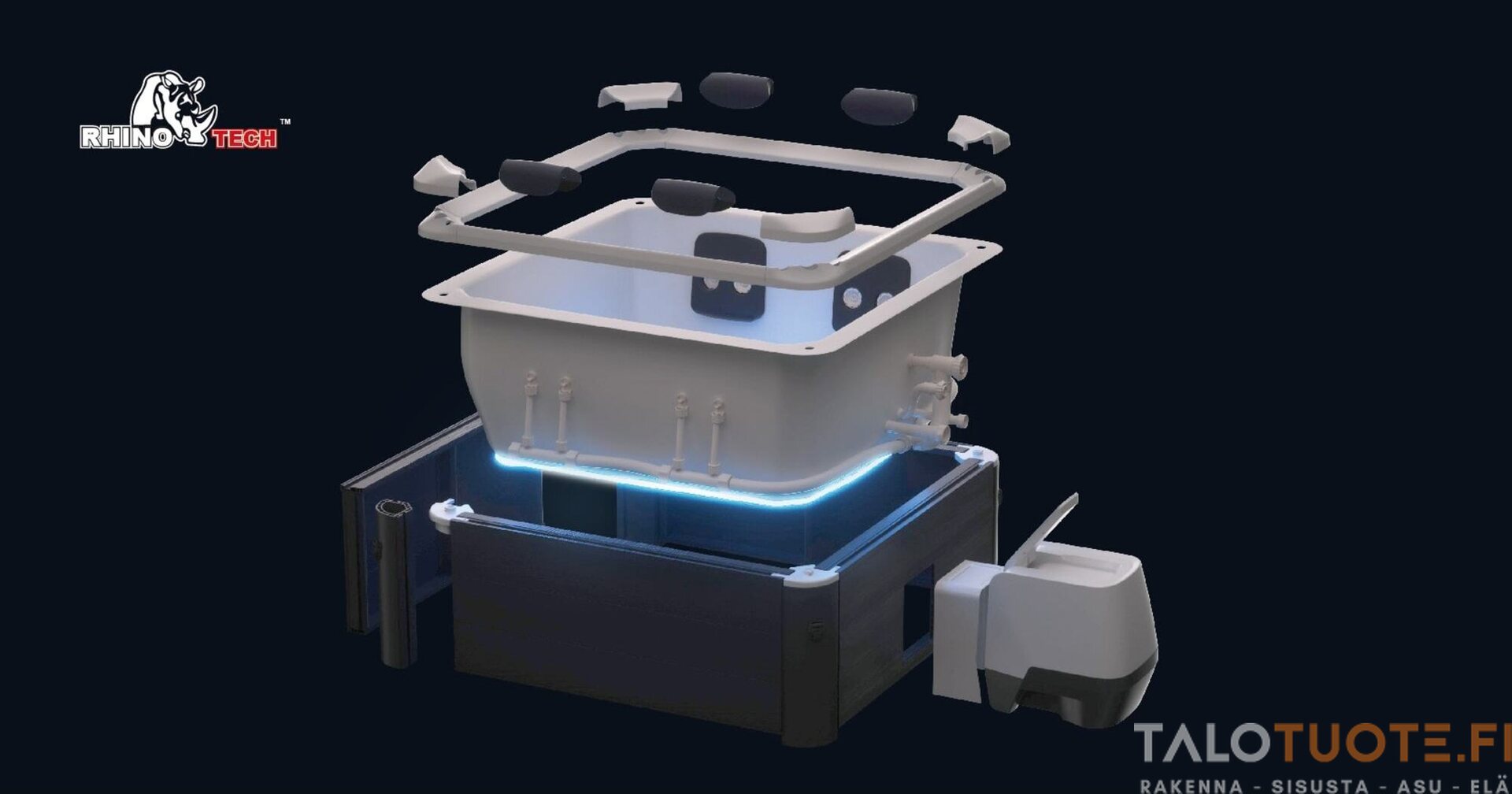 Oslo Plus toimitetaan kattavalla lisävarustepaketilla, joka tekee altaan käytöstä vaivatonta ja miellyttävää. Mukana tulee mm. suodatinpatruunat, kansiverhoilu, eristekansi, täyttöletku adaptereineen, kemikaaliannostelija, pH-testiliuskat, eristematto sekä tunnelmallinen LED-valonauha altaan alareunaan.