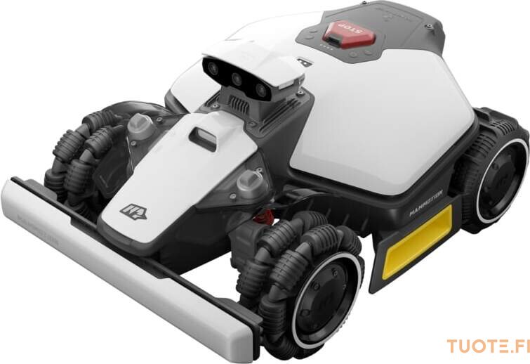 6,1 Ah akku tarjoaa noin 150 minuutin käyttöajan, ja laite palaa automaattisesti lataukseen. Bluetooth-, WiFi- ja 4G-yhteyksien ansiosta hallitset ja ohjelmoit leikkuria missä tahansa.