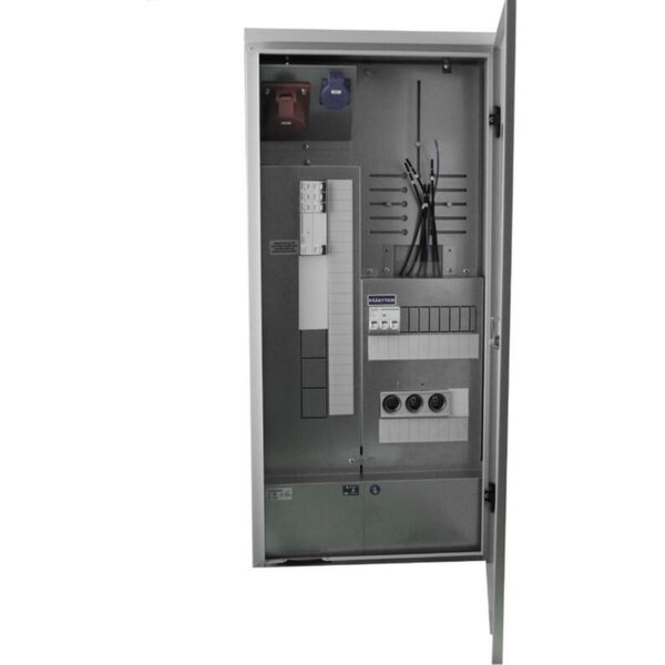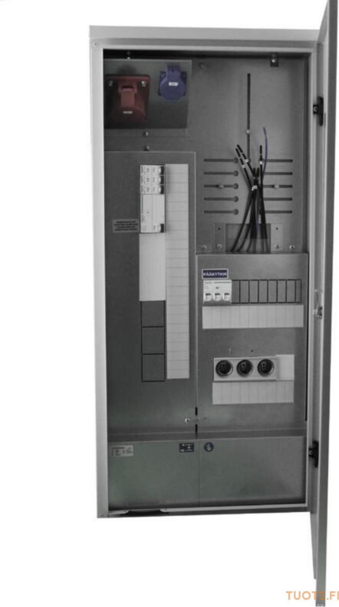 Mittauskeskus IP34. Johdonsuojakatkaisijat 3 kpl C16A. Vikavirtasuoja 25A. Varatilaa 16 moduulia ja tilavaraus ylijännitesuojalle. Pistorasiat 1 kpl Schuko 1 kpl CEE 5x16A. Läpivientilaippa syöttö VET 26-35. Asunnon nousukaapeleita varten HTC-17 laippa. Lisävarusteena saatavilla jalusta.