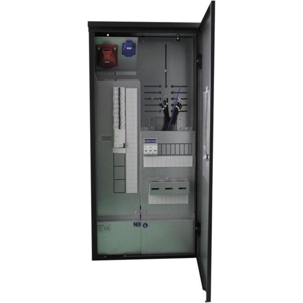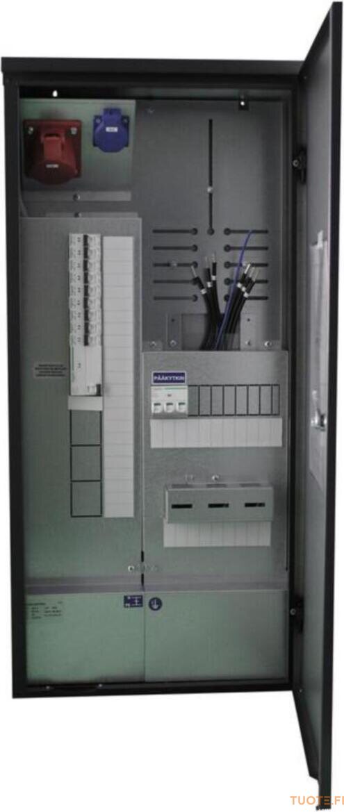 Mittauskeskus IP34. Johdonsuojakatkaisijat 3 kpl C10A 6 kpl C16A. Vikavirtasuoja 1kpl 40A. Varatilaa 10 moduulia ja tilavaraus ylijännitesuojalle. Pistorasiat 1 kpl Schuko 1 kpl CEE 5x16A. Läpivientilaippa syöttö VET 26-35. Asunnon nousukaapeleita varten HTC-17 laippa. Lisävarusteena saatavilla jalusta.