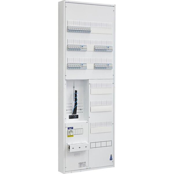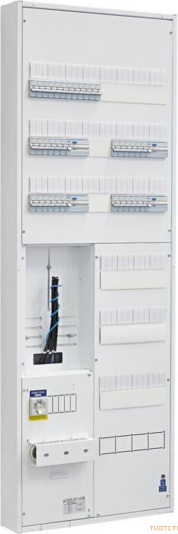 Mittauskeskus IP30. Pinta- ja uppoasennukseen. Nimellisvirta 35A. 1-tariffi. Johdonsuojakatkaisijoita 36 kpl, vikavirtasuojakytkimiä 4 kpl (4-nap. 30mA 25A). Toimitus ei sisällä tulppasulaketarvikkeita. Ovi tilattava erikseen (3315897 tai 3315899).