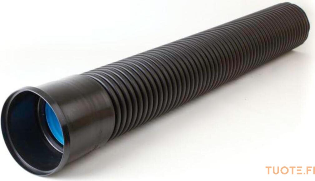 Tupla PE-Sadevesiputki SN8 muhvilla ja tiivisteellä. Putken ulkopinta musta, sisäpinta sininen, ei tunnisteraitaa. Pipelife Tupla sadevesiputki on tarkoitettu sade- ja hulevesien johtamiseen. Tupla sadevesiputki valmistetaan PE-muovista ja toimitetaan 6 m salkoina. Pipelife Tupla sadevesiputken optimoidulla profiililla saadaan aikaan riittävä rengasjäykkyys liikennealueelle. Tupla sadevesiputki on kevyt käsitellä ja helppo asentaa. Sen sileä sisäpinta varmistaa hyvän virtauksen.