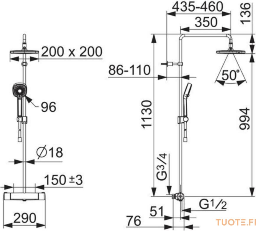 Keskiöetäisyys: 150 mm
