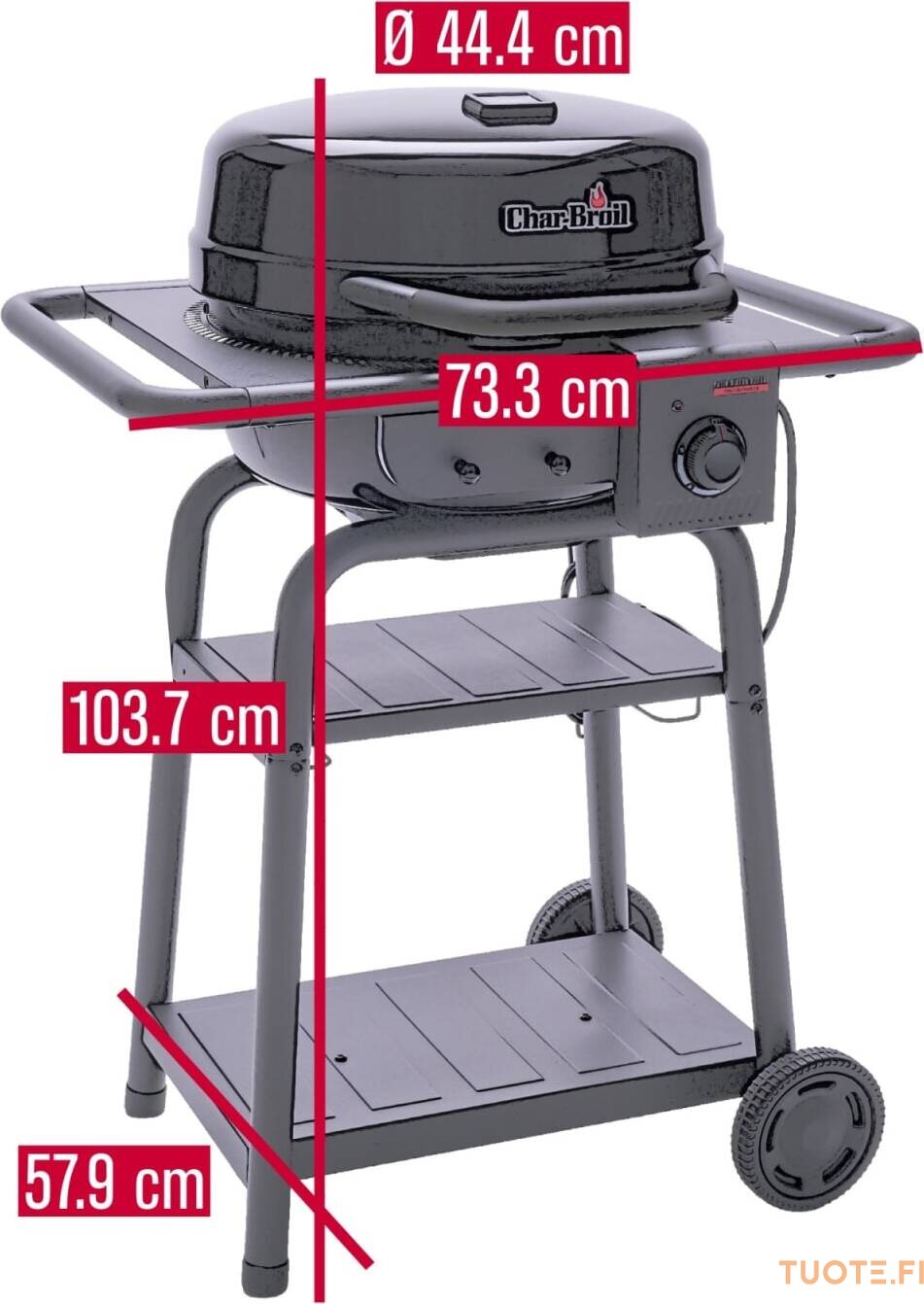 3 metrin virtajohdon ja kahden tukevan pyörän ansiosta grilliä on helppo siirtää paikasta toiseen, myös epätasaisella maalla. Kätevät sivukahvat helpottavat grillin asettelua juuri sinne, missä sitä tarvitset.