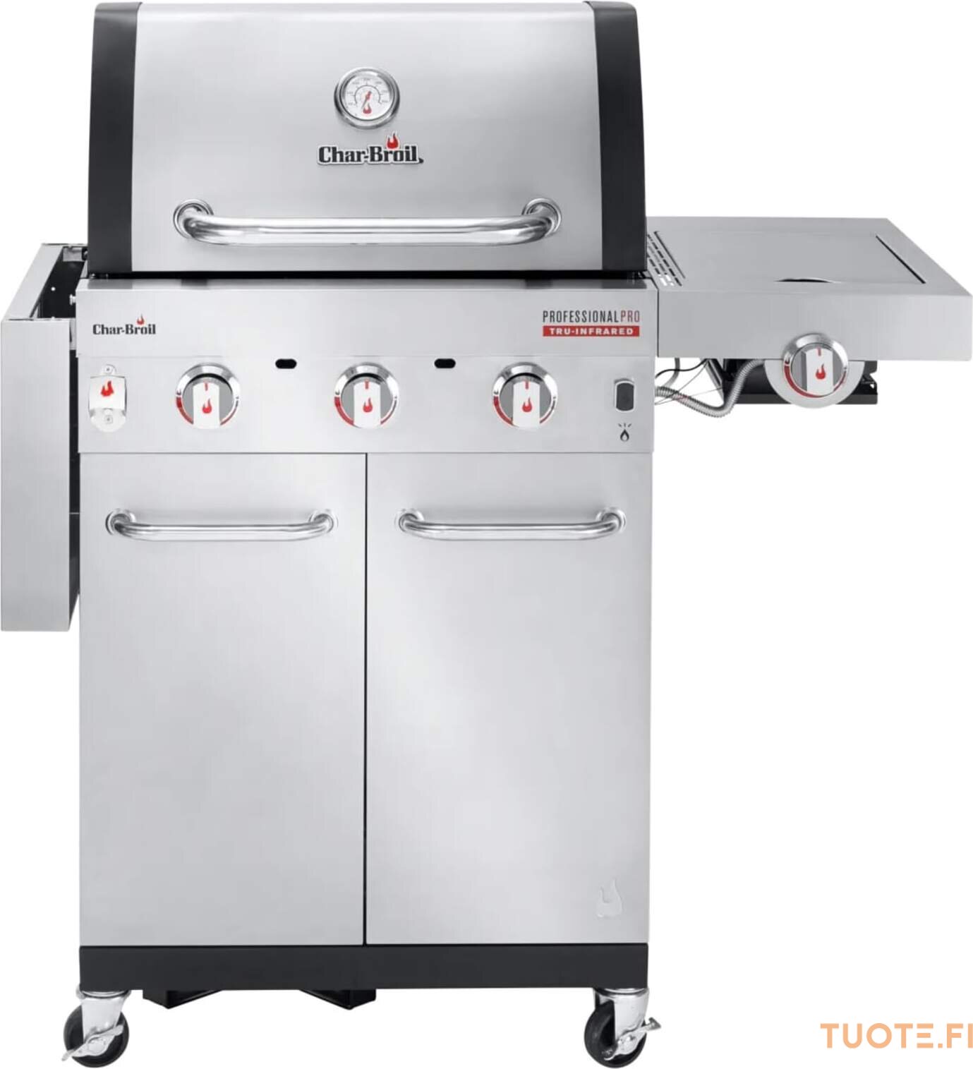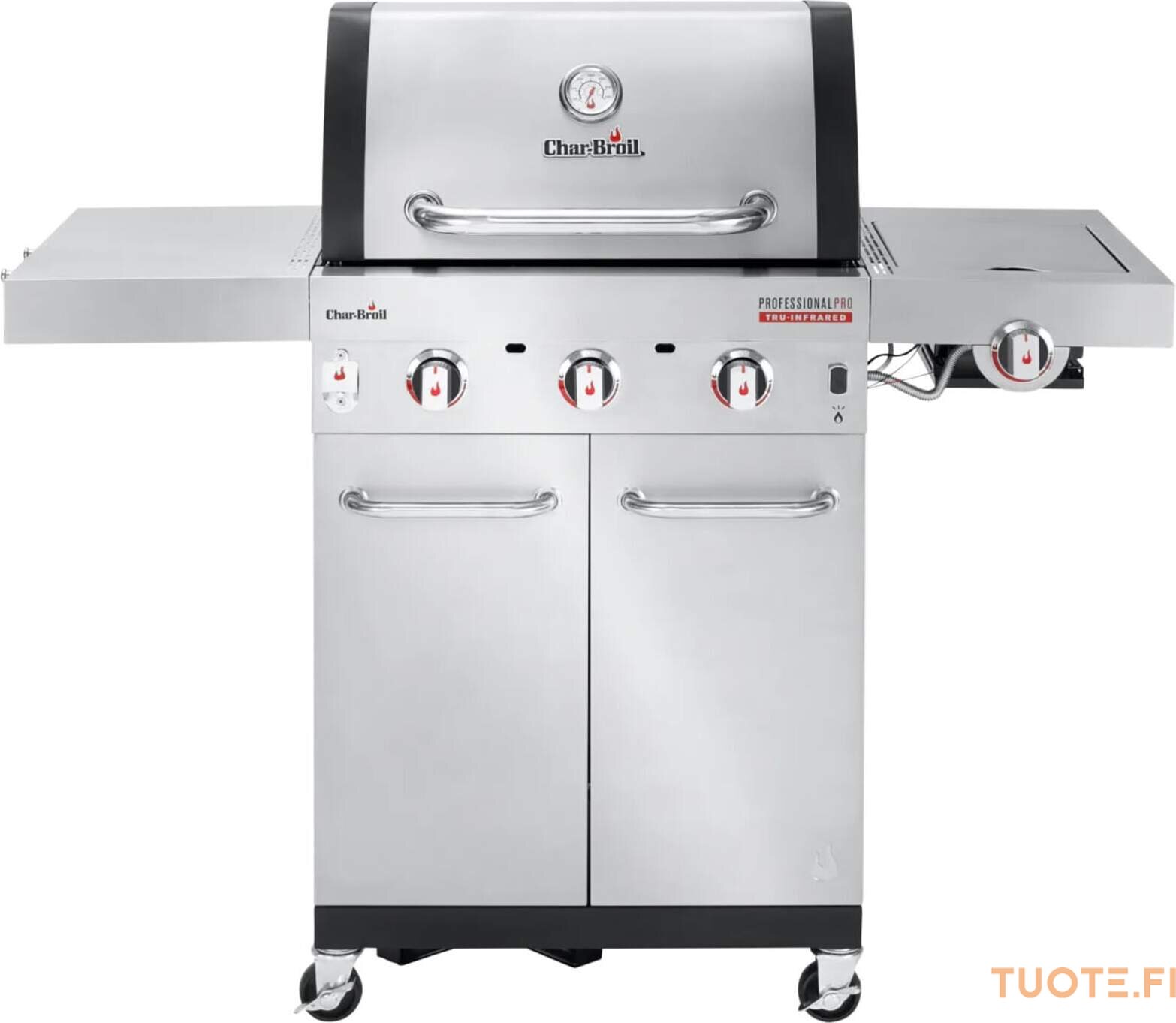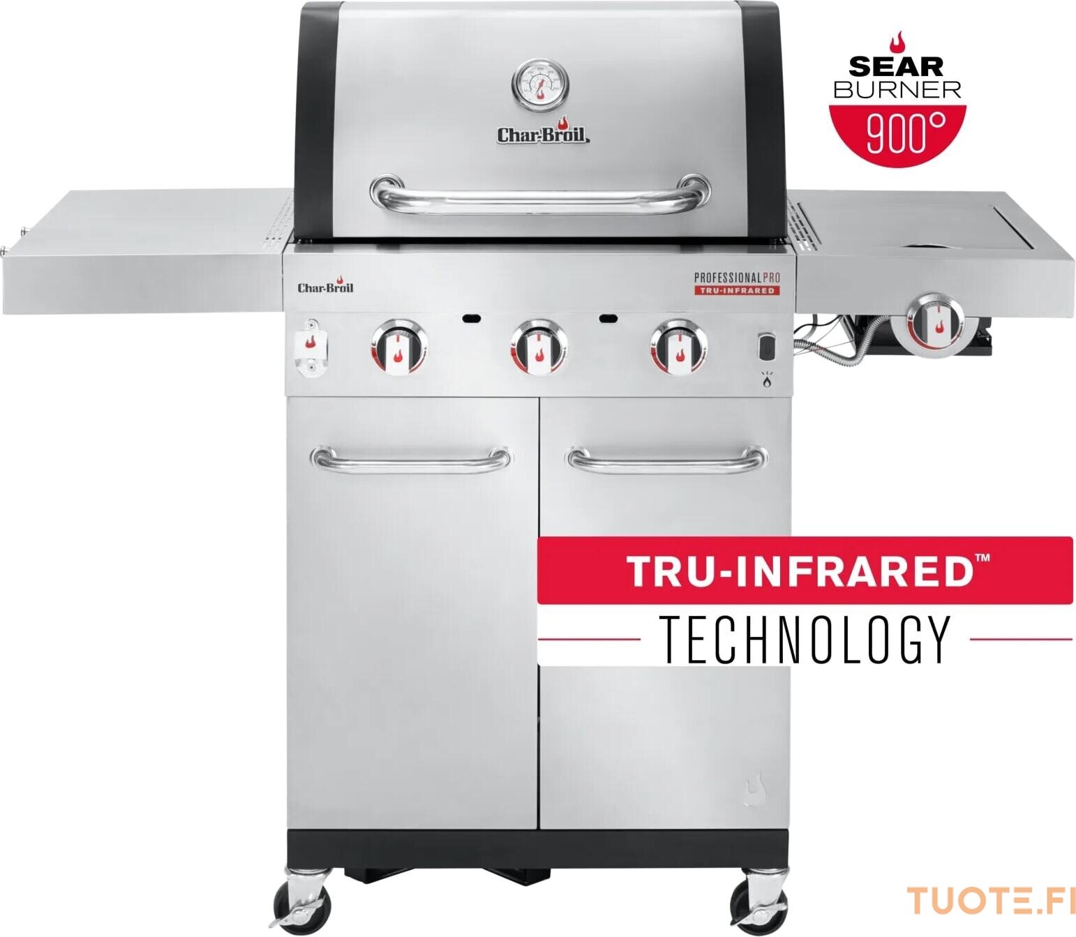 Haluatko täydellisen grillauspaketin? Silloin Professional PRO on juuri oikea valinta! Erittäin kuuma, erittäin kätevä, erittäin monipuolinen… tässä grillissä on kaikki. Kolme polttoainetehokasta ruostumattomasta teräksestä valmistettua huippuluokan poltinta tuottavat maksimaalisen lämmön. Innovatiivinen TRU‑Infrared™‑teknologiamme jakaa lämmön tasaisesti, jolloin ruoka pysyy jopa 50 % mehukkaampana.