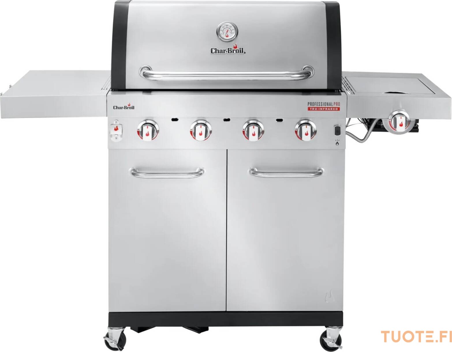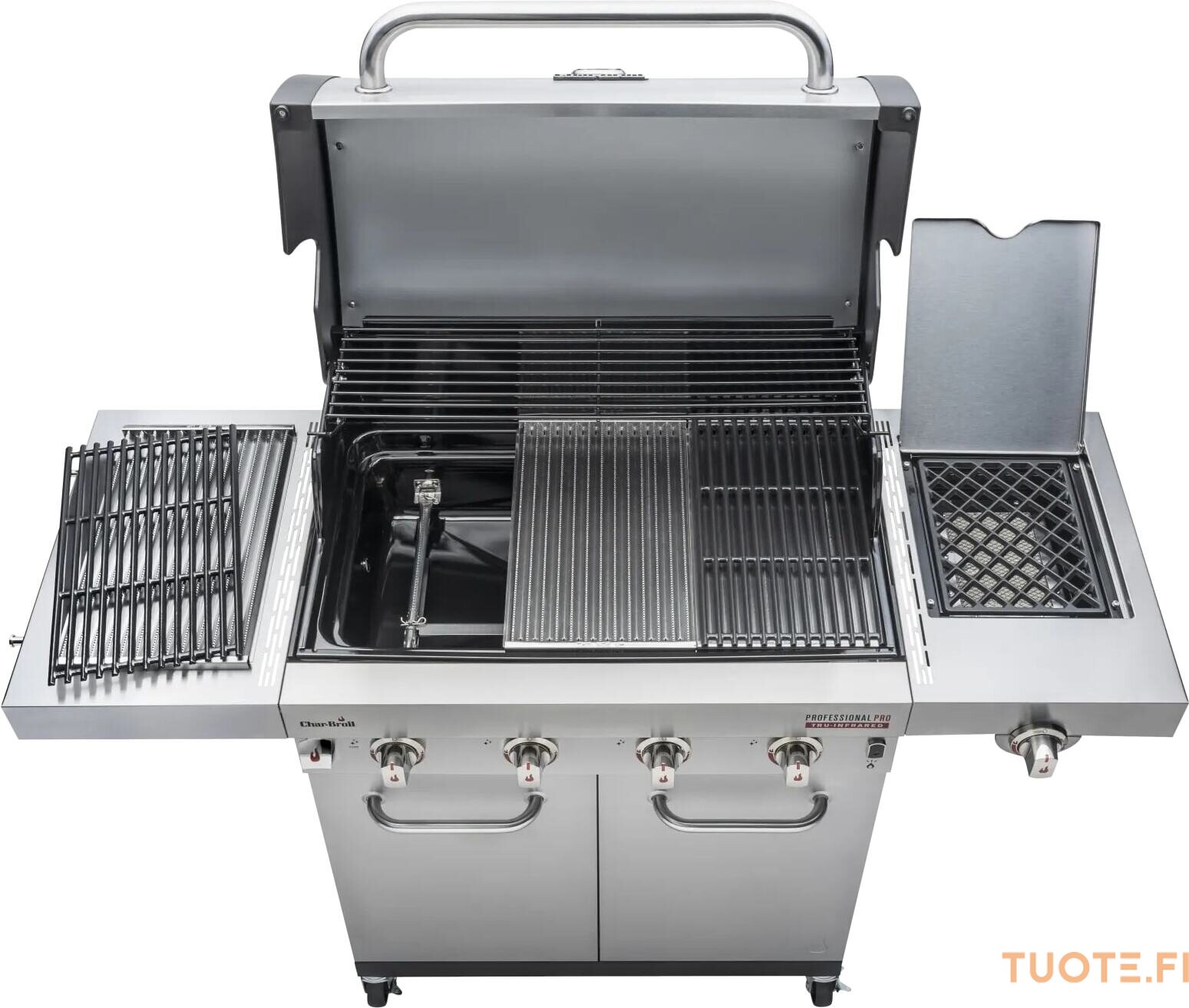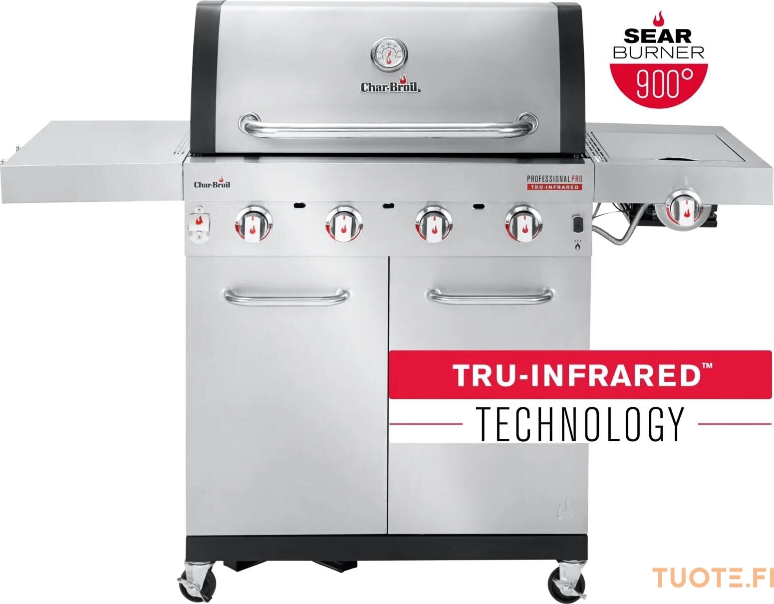 Haluatko täyden grillauspaketin? Silloin Professional PRO on täydellinen grilli sinulle! Erittäin kuuma, erittäin kätevä, erittäin monipuolinen… tässä grillissä on kaikki. Neljä ruostumattomasta teräksestä valmistettua, polttoainetehokasta huippuluokan poltinta tuottavat maksimaalisen lämmön. Innovatiivinen TRU‑Infrared™‑teknologiamme jakaa lämmön tasaisesti, jolloin ruoka pysyy jopa 50 % mehukkaampana.