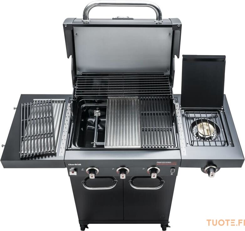 Tukeva, korkea kansi ja siihen integroitu lämpömittari mahdollistavat monipuoliset kypsennystavat. Sivupolttimella voit valmistaa kastikkeita ja lisukkeita grillaamisen ohessa.